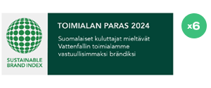 Konsumenterna utsåg Vattenfall till Finlands mest hållbarhetsorienterade elbolag 2025 för sjunde året i rad.