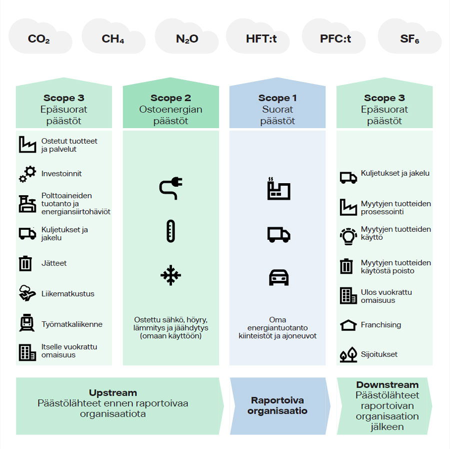 Kasvihuonekaasupäästöjen kolme luokkaa